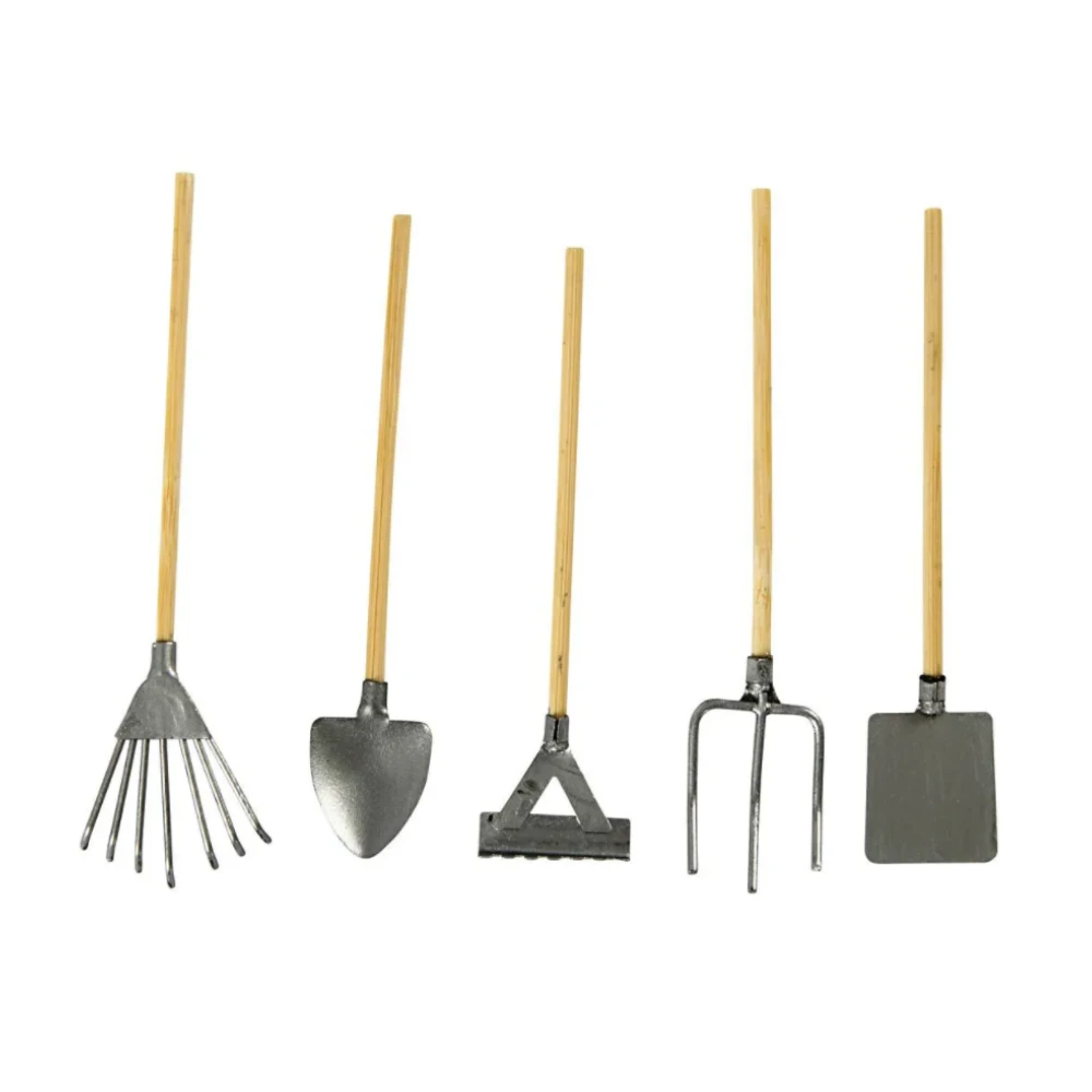 Houten Tuingereedschap set van 5 (mini) is een set van mini harkjes en schepjes van het merk Creativ Company. Gebruik het setje tuingereedschap als decoratie op de seizoenstafel of bij jouw kabouterdeurtje.