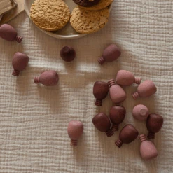 Houten ananas oudroze, 36st. (Mandala pinappels) is een set van 36 oudroze gekleurde ananassen van het merk Grapat. Je kunt ze gebruiken om mooie vormen en patronen te maken of om te tellen, sorteren of op de seizoenstafel.