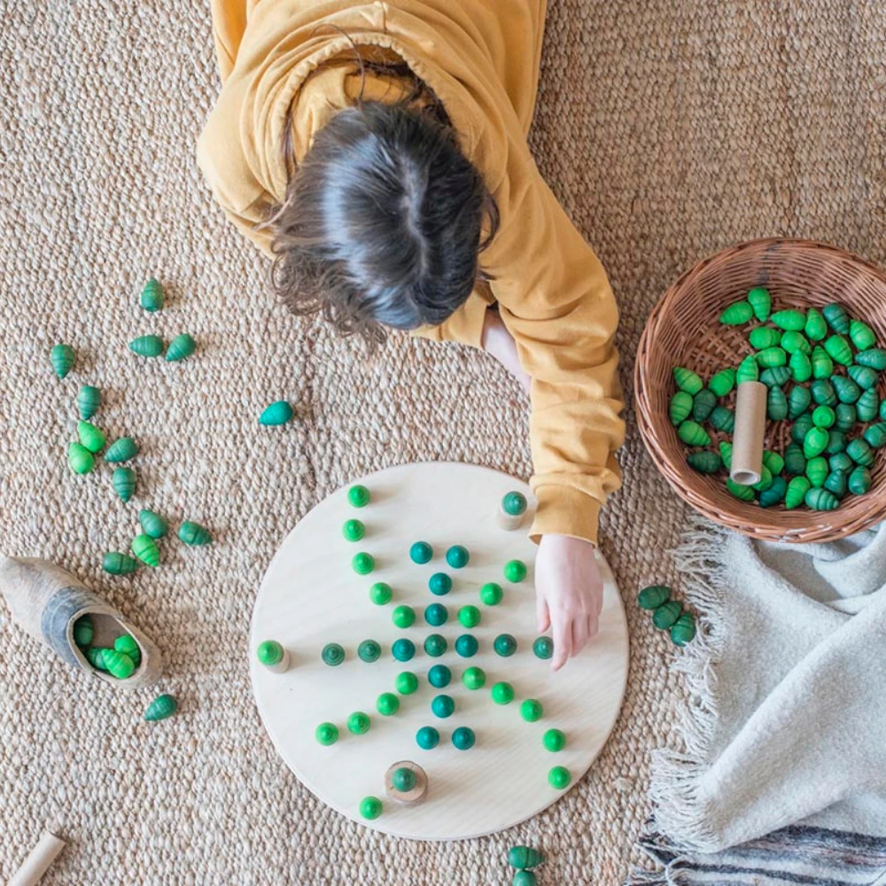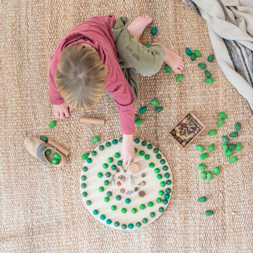 Houten bomen groen, 36st. (Mandala trees) met ander houten speelgoed van Grapat om nog mooiere en dynamischere vormen en patronen te maken.