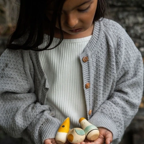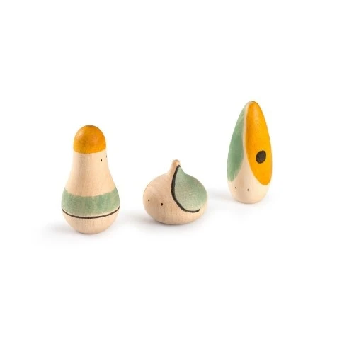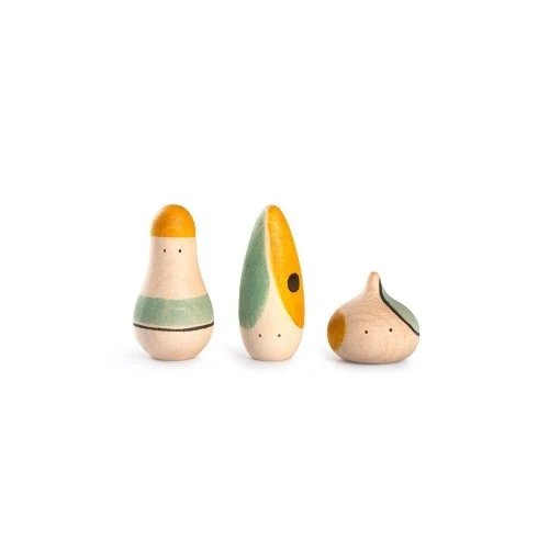3 schattige houten speelfiguren van het merk Grapat waar je uren lang mee kan spelen. De poppetjes zijn geïnspireerd door abstracte artistieke bewegingen.