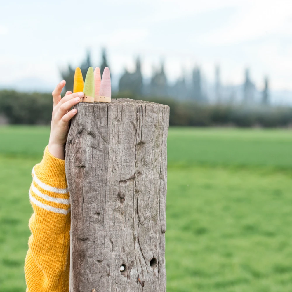 De houten Nins poppetjes van Grapat zijn te gebruiken voor alle leeftijden. Voor baby’s zijn de houten poppetjes fascinerend om naar te kijken en te voelen. Oudere kinderen kunnen de poppetjes gebruiken om hun eigen fantasie tot leven te brengen. Combineer de houten kabouters met andere houten poppetjes of loose parts, zoals de groene bomen. Je kan ze ook gebruiken op de seizoenstafel. De mogelijkheden zijn eindeloos, als je jouw fantasie maar gebruikt.