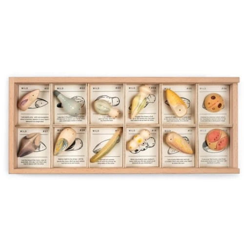 Wild is een verzameling van 12 wezens uit het faunarijk van het merk Grapat. Op de grens tussen fantasie en realiteit, heeft elk zijn eigen superkracht en verhaal op zijn kaart geschreven als een uitnodiging om te spelen. De sorteerbak is inbegrepen voor opslag en verzamelen, maar kan een perfecte aanvulling zijn op elke speelactiviteit met een open einde.