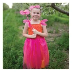 Prachtige Feeën verkleedset van het merk Great Pretenders. Set wordt geleverd met jurk, stad en haardband. US maat 5-6, Nederlandse maat +/- 116-122.