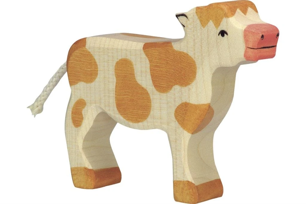 Holztiger Boerderij: kalf staand, bruin 11x3x9cm, hout