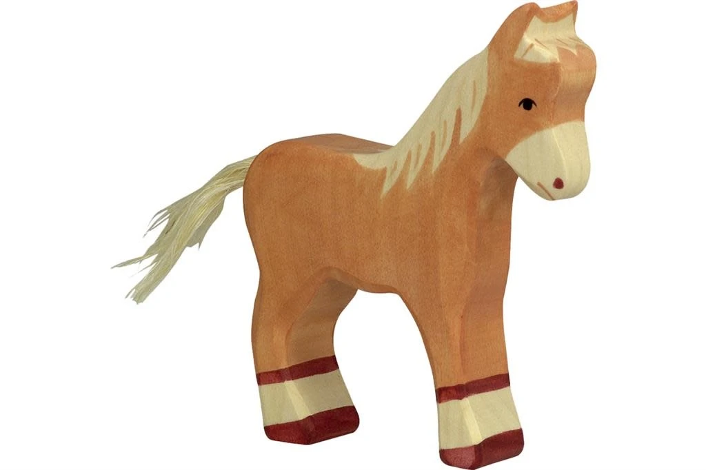 Holztiger Boerderij: veulen staand, lichtbruin 11x2x13cm, hout