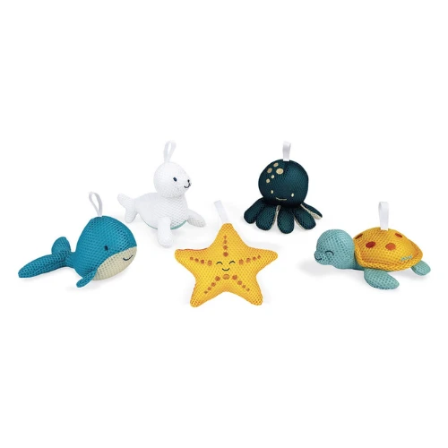 Vrolijke, zachte bad sponsjes van het merk Janod. Verkrijgbaar in: walvis, zeehond, octopus, zeester en schildpad.