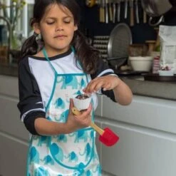 De kleren van jouw kleintje blijven schoon wanneer ze in de keuken staan, met dit kookschort van het merk Rex London.