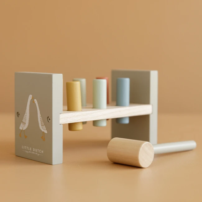 Houten speelgoed – houten hamerbank olive gans (Little Goose) is een houten hamerbank in zacht groene kleuren uit de Little Goose collectie van het merk Little Dutch.