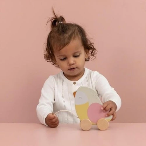 Abby, de vrolijke stadsmus, volgt je waar je ook gaat! Trek aan het touwtje en ga samen op avontuur! Abby is altijd op zoek naar nieuwe vrienden en fladdert graag rond om een goed plekje te vinden voor haar nestje. Deze trekvogel is gemaakt van duurzaam hout en zal nooit moe worden van het spelen. Ze moedigt jouw kleintje aan om te lopen en helpt bij de motorische ontwikkeling.
