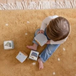 Van voelen tot vastpakken. Maak van ‘tummy time’ een speels avontuur met deze set zachte activiteitenblokken. De stapelbare set heeft een op de haven geïnspireerd thema en bestaat uit 4 verschillende blokken. Elk exemplaar is versierd met kleurrijke labels, texturen en prints om zintuiglijk spelen te stimuleren. Je kleintje zal tijdens het spelen ook een rinkelend belletje, een spiegeltje én een ratelend geluid ontdekken.