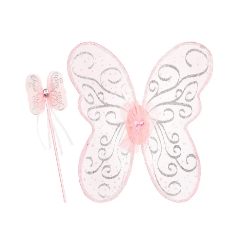 Mooi set verkleedkleding voor kinderen van het merk Souza! Bestaande uit een set vleugels en een toverstaf in het roze met glitters.